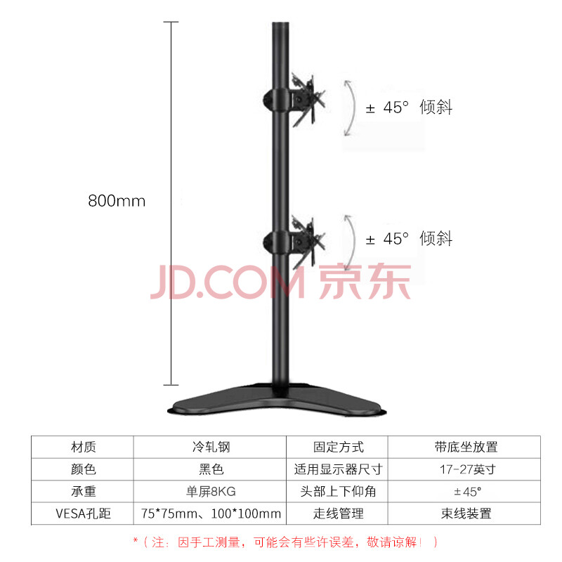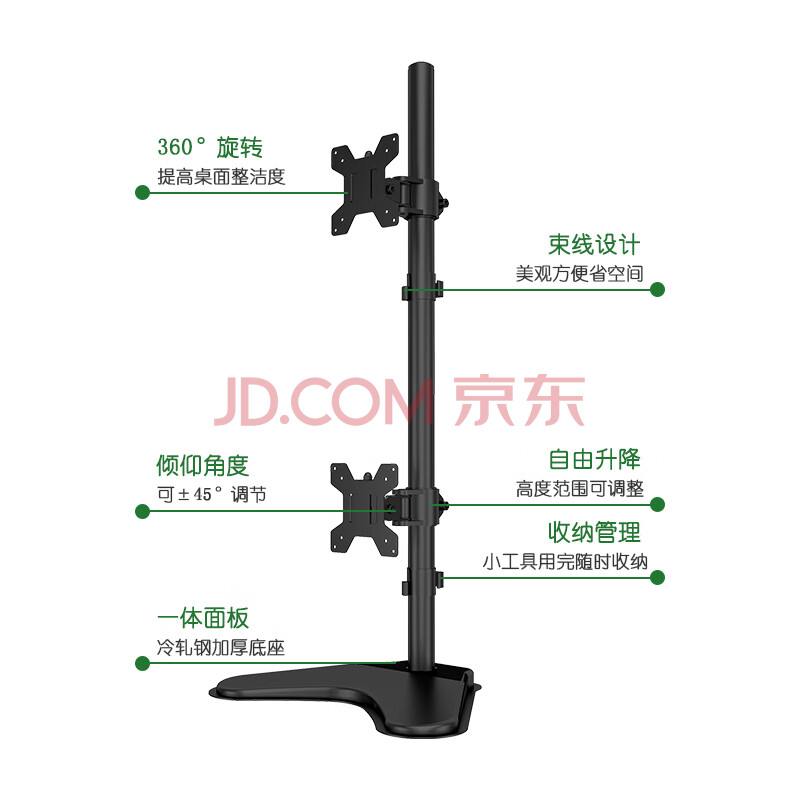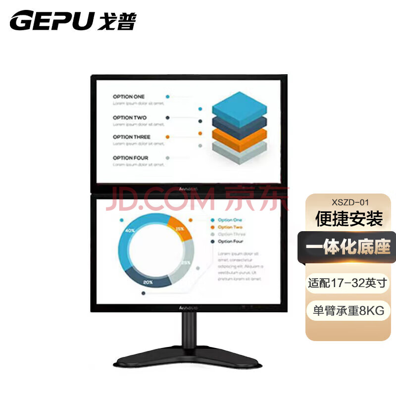 商品相册:戈普(GEPU) 显示器支架双屏 上下双屏显示器支架 电脑增高屏幕支架 通用底座式免打孔升降屏幕支架 17-27英寸第