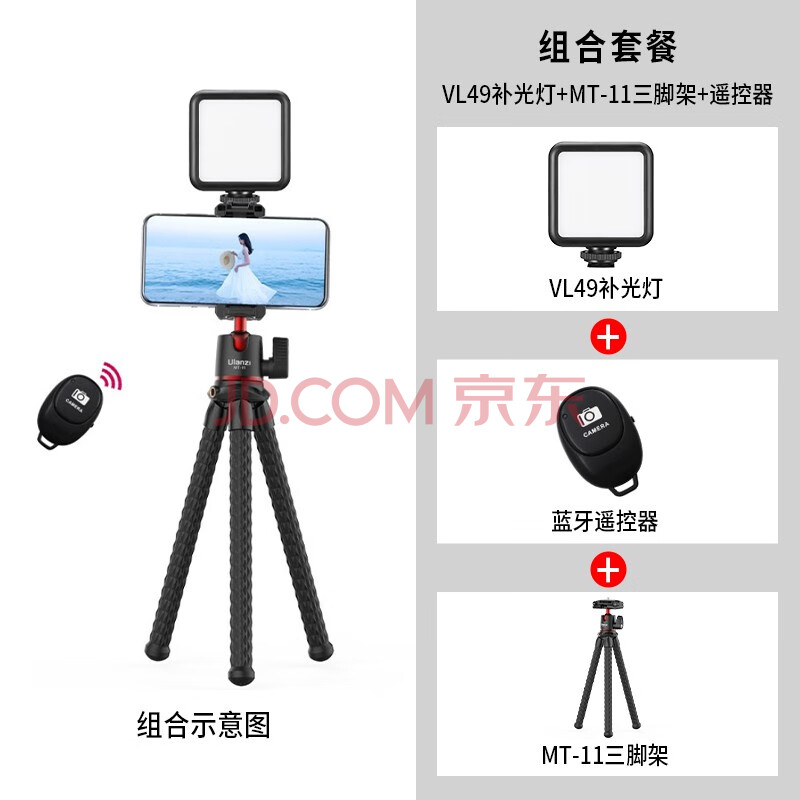 商品相册:ulanzi 优篮子 MT-11+补光灯+蓝牙遥控器多功能便携八爪鱼三脚架自拍手机单反微单相机通用第
