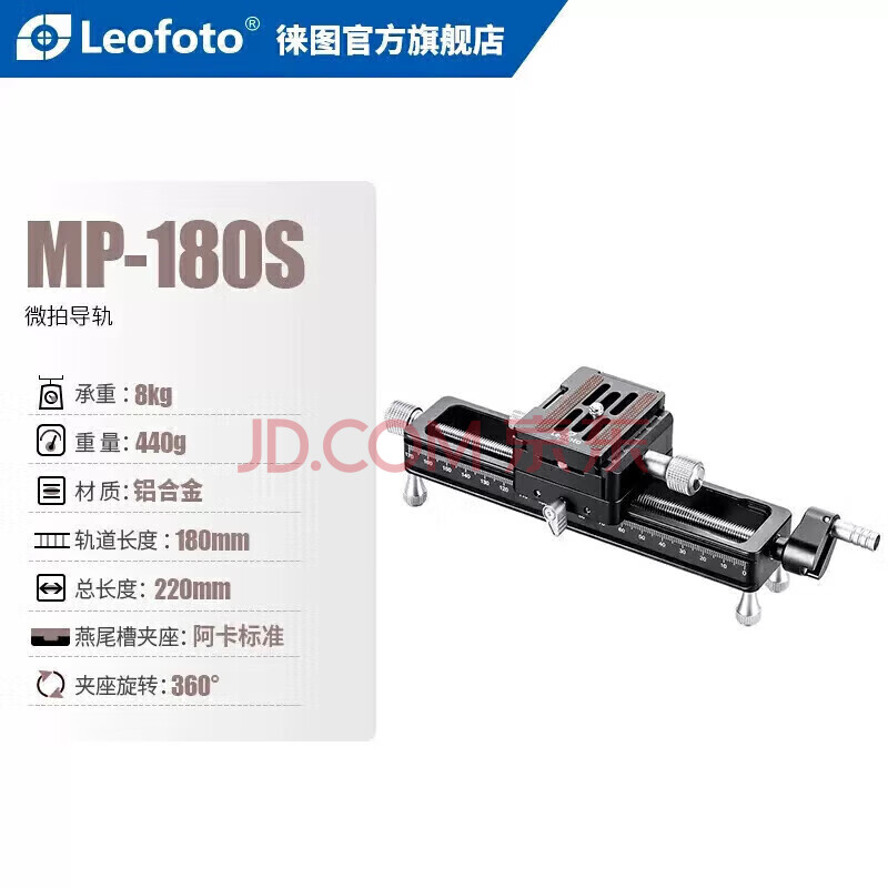 商品相册:徕图(Leofoto)微距滑轨 微距手机相机云台导轨摄影延迟滑轨拍视频便携稳定器 MP-180S第