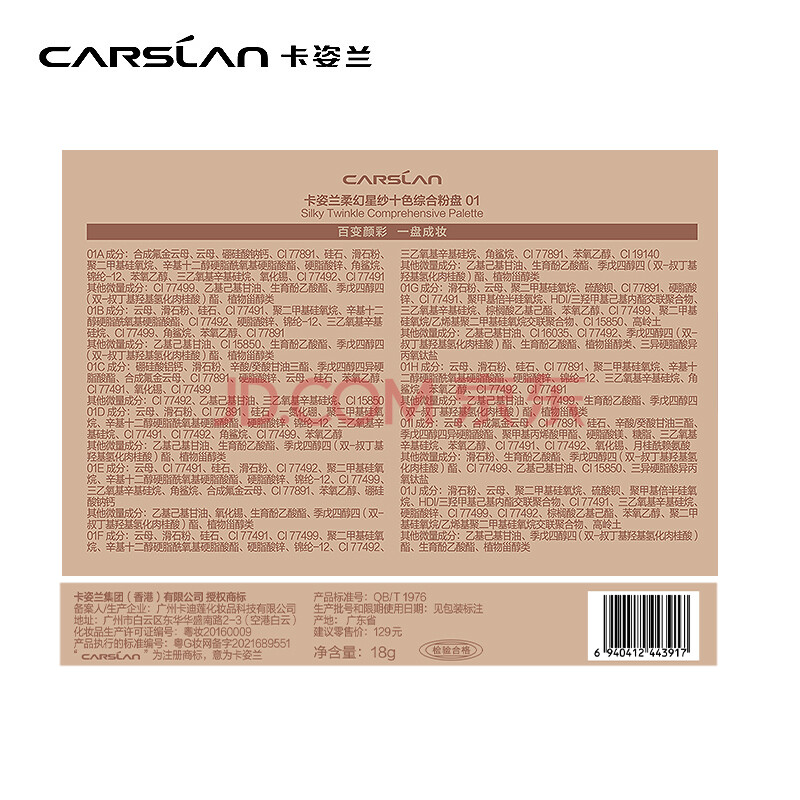商品相册:卡姿兰(Carslan)眼妆3件套持妆(十色眼影01+眼线笔2.1g+睫毛膏8g) 生日礼物送女生第
