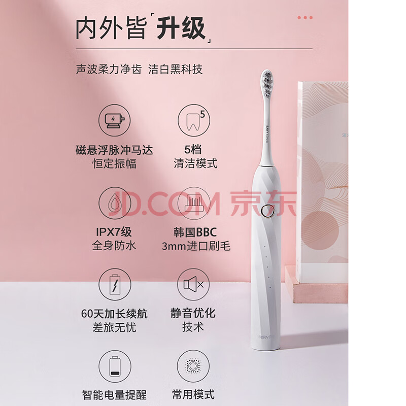 商品相册:舒客情侣电动牙刷智能换区成人学生牙刷送男友/女友5种模式生日礼物 T2粉 牙刷第1张/共9
