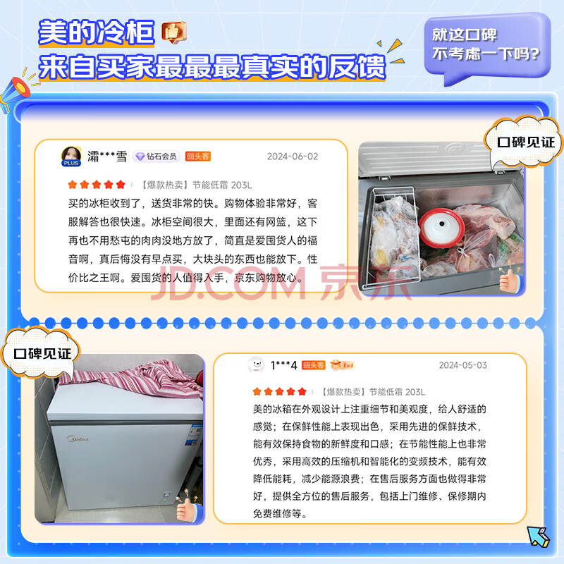 商品相册:美的(Midea)203L单温家用冰柜冷藏冷冻柜两用低霜小冰柜一级能效节能冷柜小型冰箱BD/BC-203KMD(E)焕新补贴第