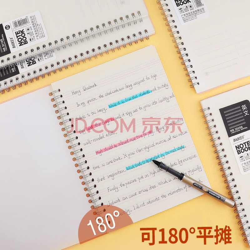 商品相册:宝克(BAOKE)NB3018B 学生英文笔记本B5/60页 金属双线圈本 课堂记事本 单本装第