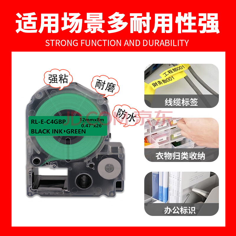 商品相册:e代标签色带适用爱普生12mm绿底黑字标签纸LW-K400标签机600P 1000P C410 Z700 Z900锦宫打印机第