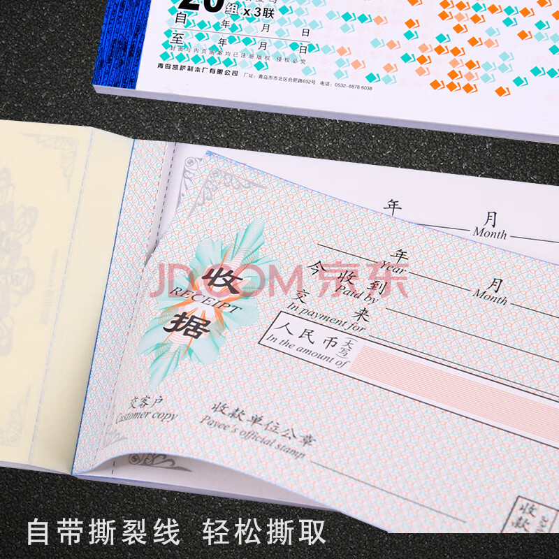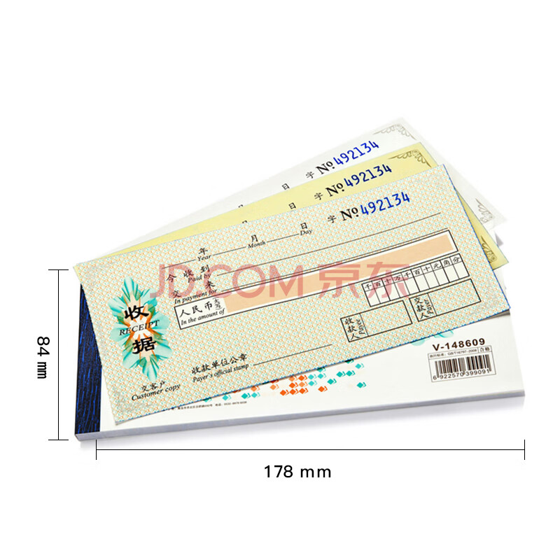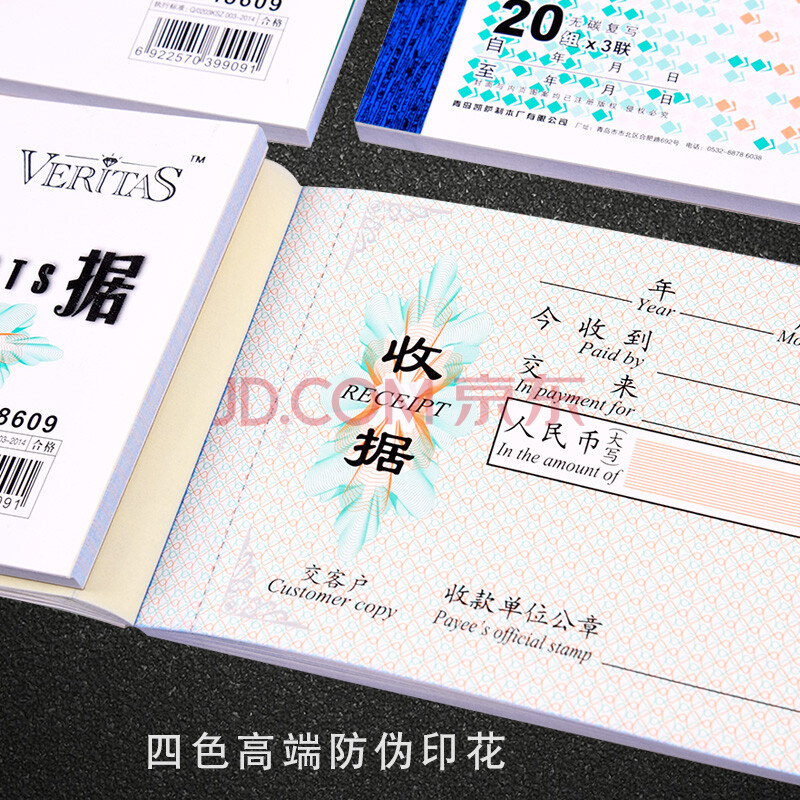 商品相册:凯萨(KAISA)48K/三联印花收据VERITAS系列无碳复写商务防伪票据 中英文收据 20组/本 V148609第