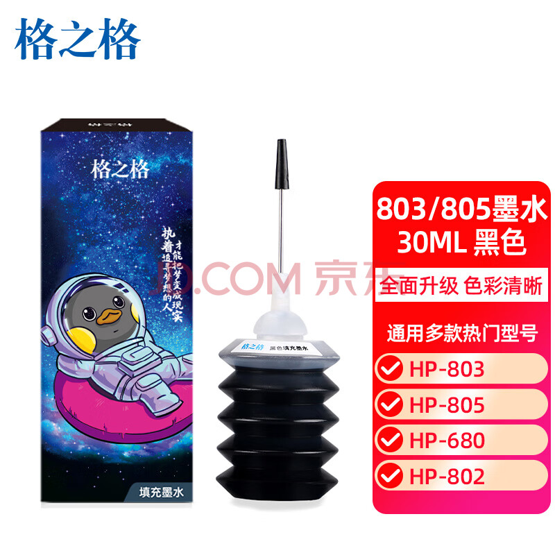 商品相册:格之格适用惠普打印机墨水hp805 803 680 682 802 804 47墨盒墨水 适用小米墨盒黑色30ML第