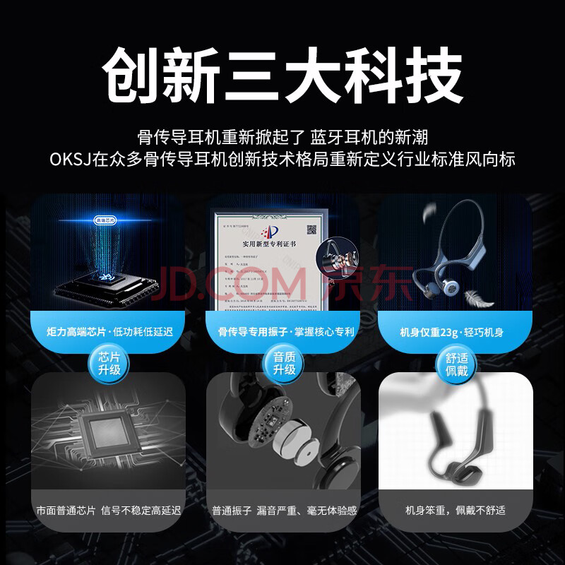 商品相册:OKSJ 【升级高端芯片】骨传导耳机 适用运动蓝牙耳机无线不入耳跑步挂脖式音乐通话第