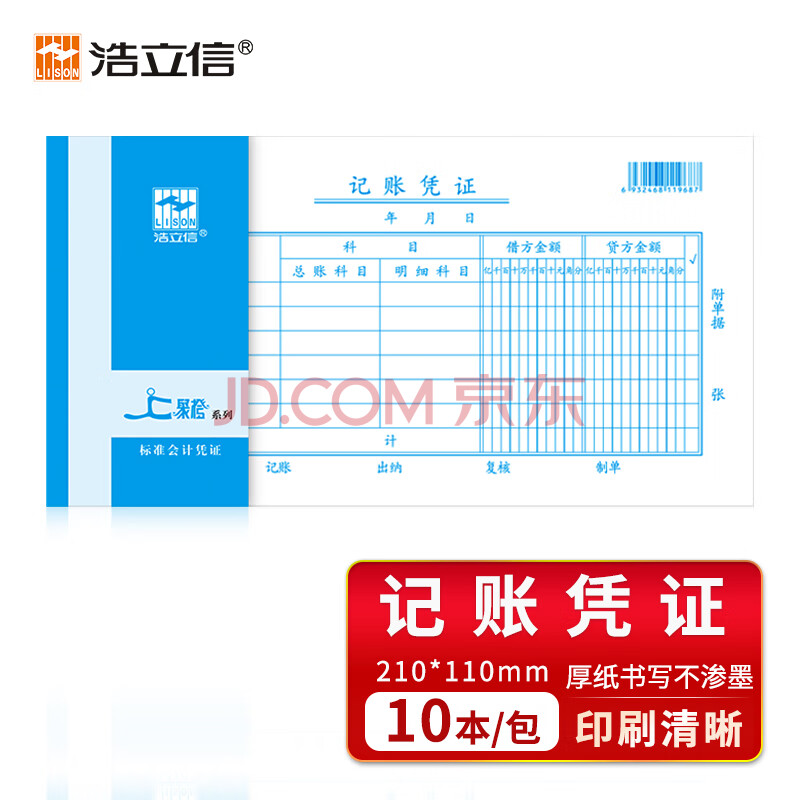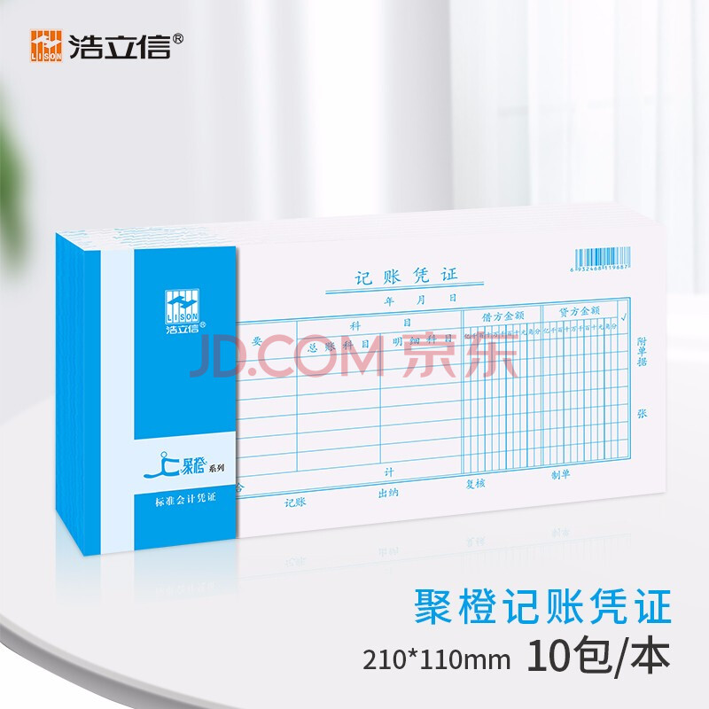 商品相册:浩立信(LISON)聚橙质优 记账凭证210-110mm 50页/本10本/包报销单据通用财务用品热门商品办公用品打印纸第