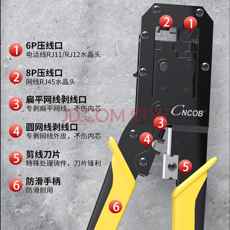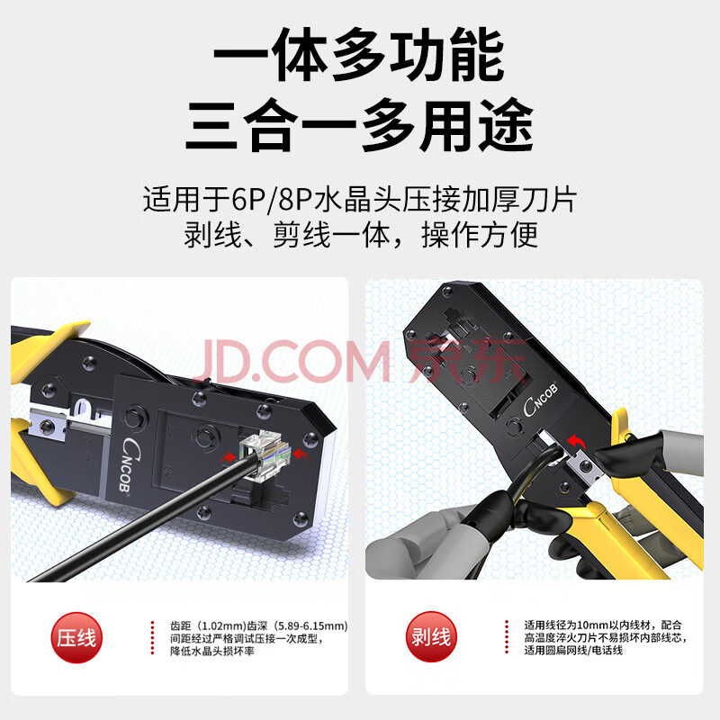 商品相册:CNCOB六类网线钳套餐省力棘轮弹簧设计双用压剥剪钳网络电话水晶头压线钳 CN-A-318V第
