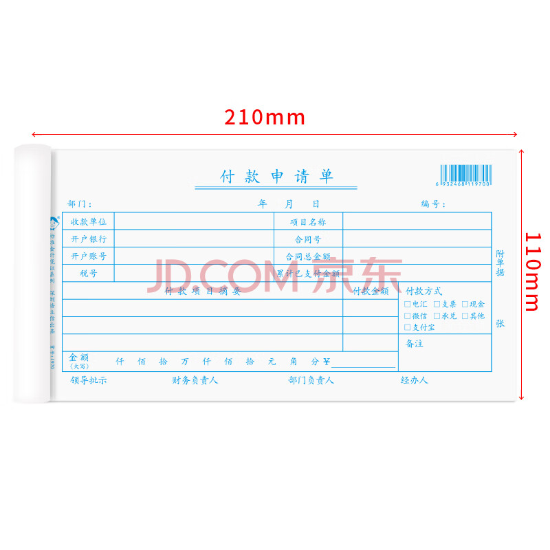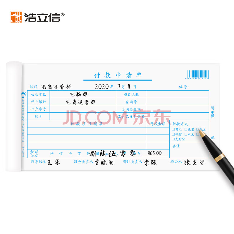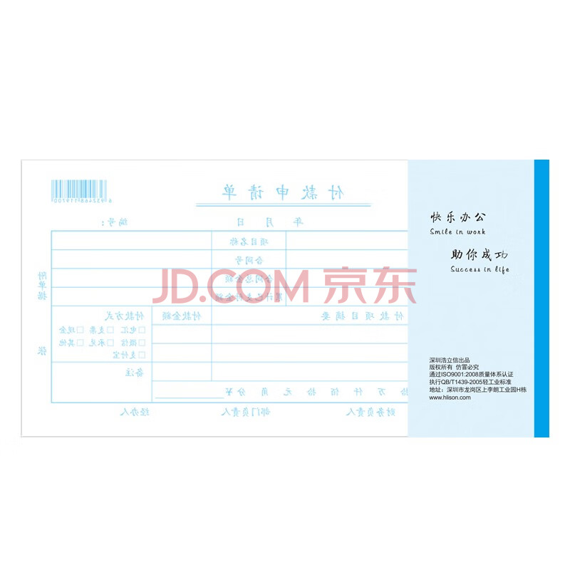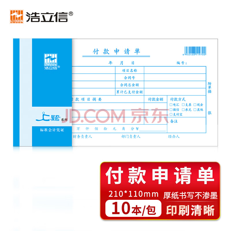 商品相册:浩立信(LISON)聚橙质优 付款申请书 210*110mm 50页/本10本/包财务通用单据第