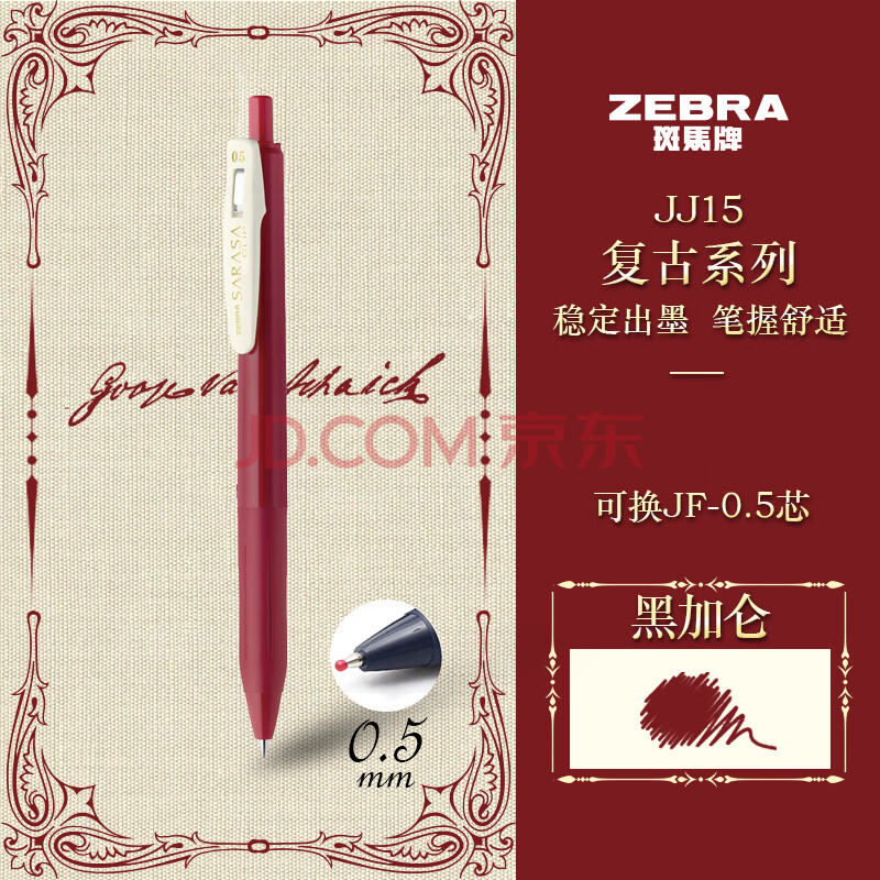 商品相册:斑马牌(ZEBRA)JJ15-V 新复古色中性笔 0.5mm按制签字笔笔 子弹头学生手账笔标记笔 黑加仑第