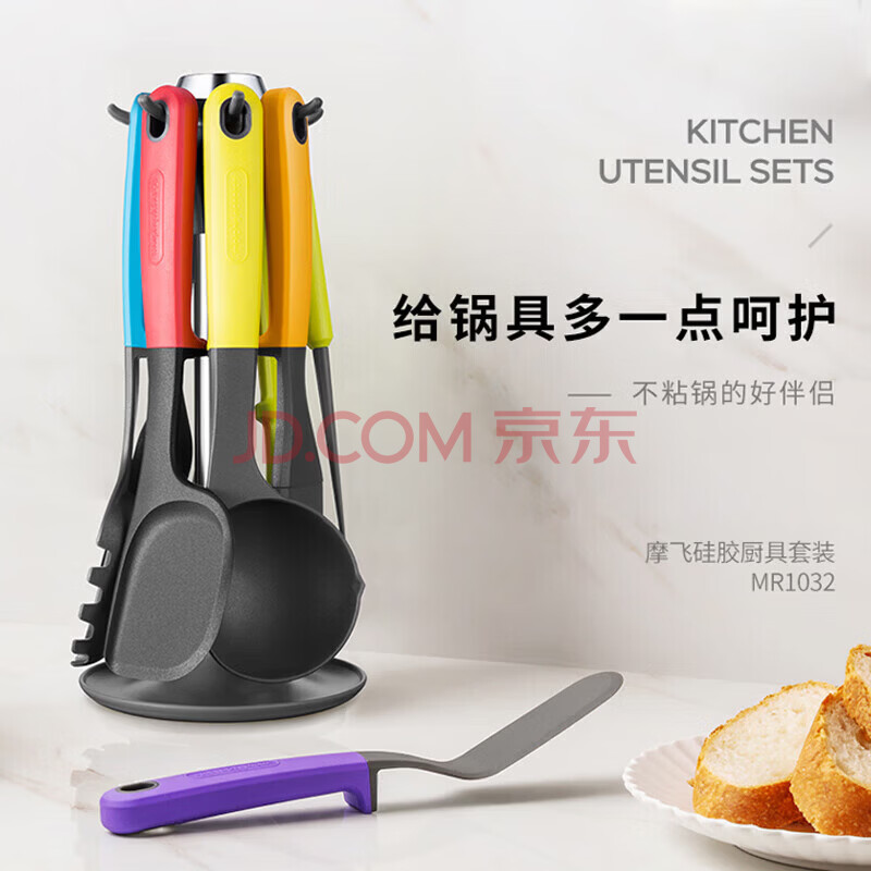 商品相册:摩飞电器硅胶厨具套装 耐摔耐用 烹饪针牛排夹油刷汤勺漏勺锅铲蛋饼铲 多功能锅厨具7件套方便收纳 MR1032第
