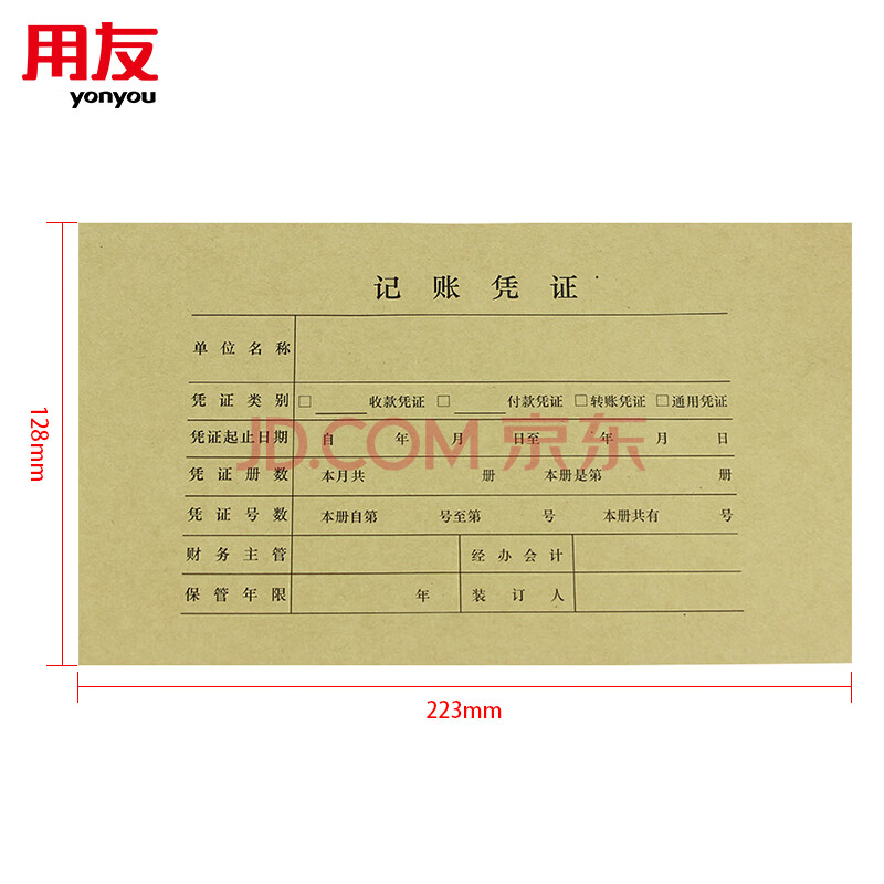 商品相册:用友表单(UFIDA)U8记账凭证装订封面连背一体式 120g牛皮纸 446*128mm 25张/包 用友凭证封面封皮 Z010124第