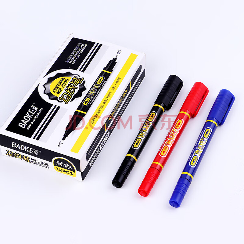 商品相册:宝克(BAOKE)MP2906 小双头水性勾线笔 美术绘画勾线用笔 蓝色 12支/盒第