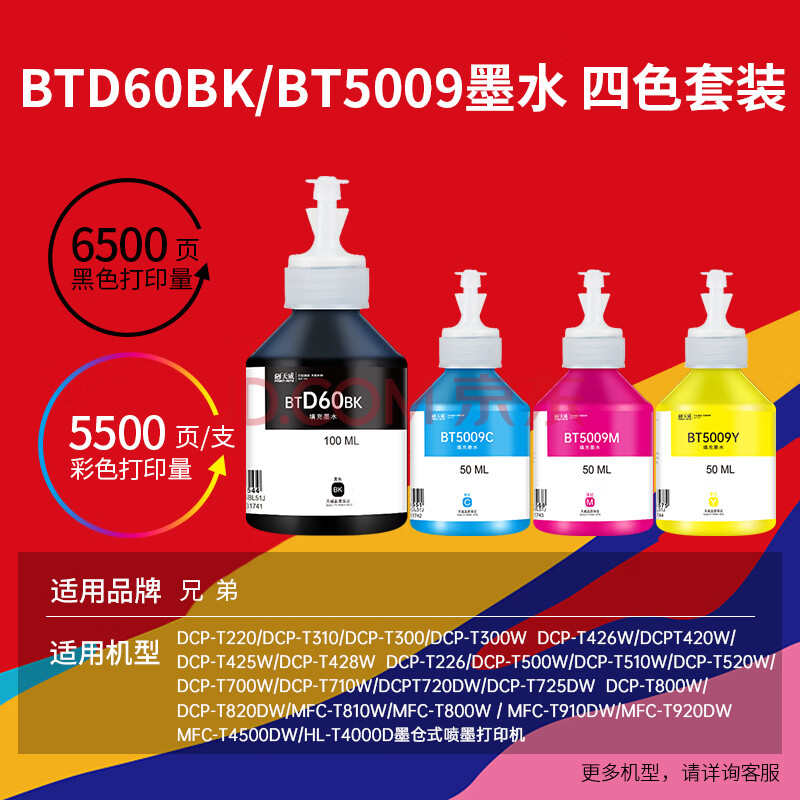商品相册:天威适用Brother兄弟DCP-T420W T425W T220 T426W T725DW T720DW T226 T310 T820DW T300 T428W打印机墨水BTD60BK第