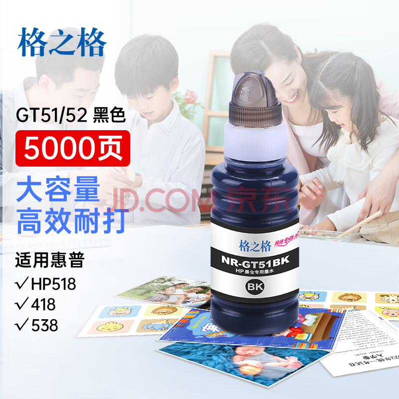 商品相册:格之格GT51墨水适用惠普518 5820 516 418 519 310 538 511 5810 5812打印机GT318 319墨仓式加墨黑色墨水第