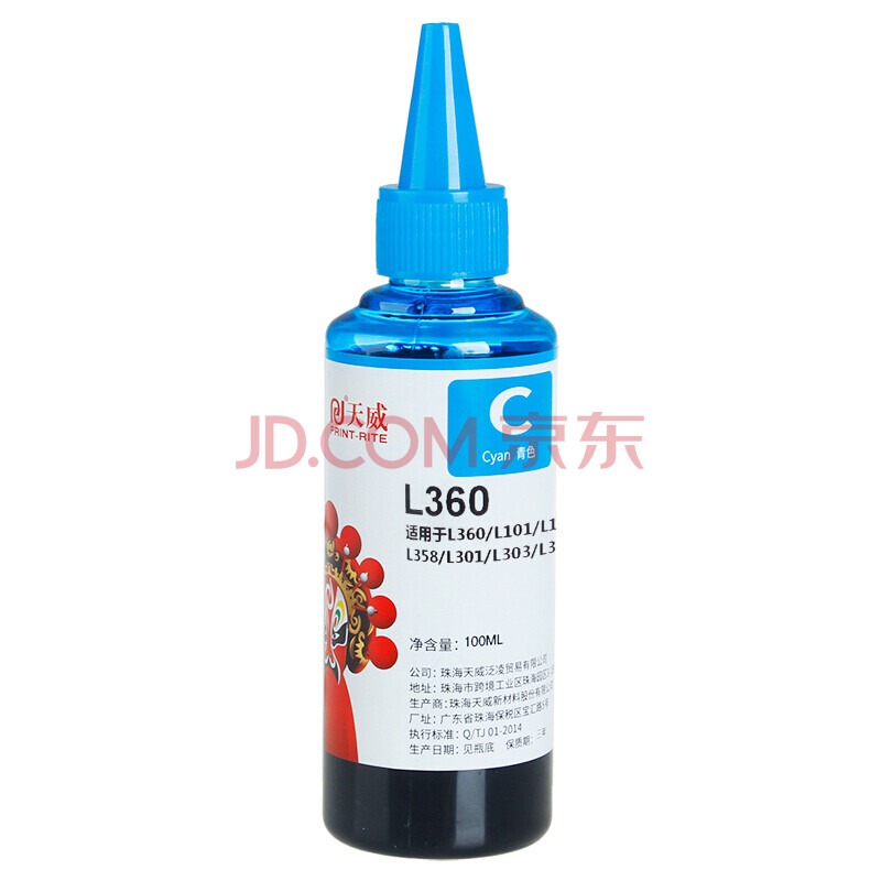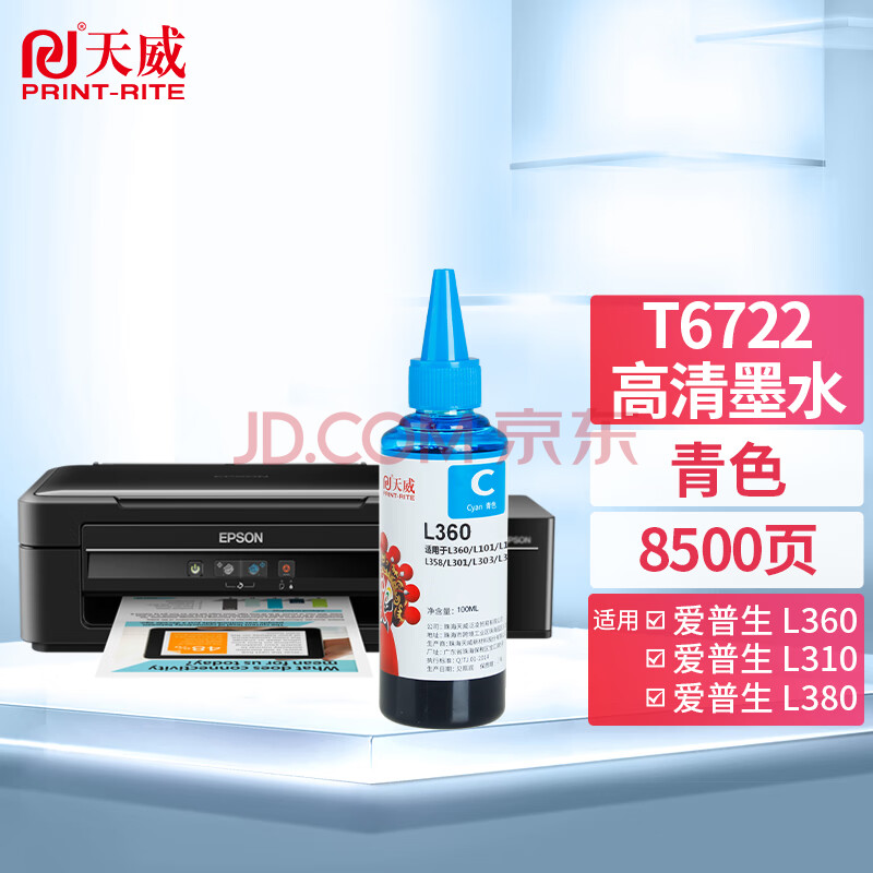 商品相册:天威 T6722墨水 青色100ml 适用爱普生EPSON L310 L380 L313 L130 L383 L1300 L363 L565 M105墨仓式打印机第