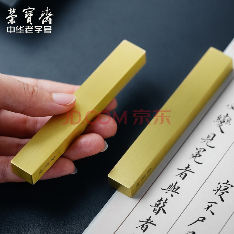 商品相册:荣宝斋 黄铜镇尺对镇 仿古铜器镇纸中式文房四宝学生毛笔书法绘画 笔架摆件压纸 黄铜对镇-小第