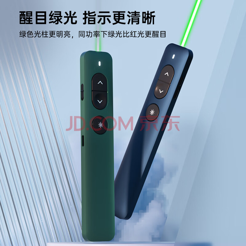 商品相册:得力(deli)激光翻页笔 绿光教师ppt投影笔激光笔教鞭蓝牙连接演讲笔 无线演示翻页器课件笔 蓝色NS100第