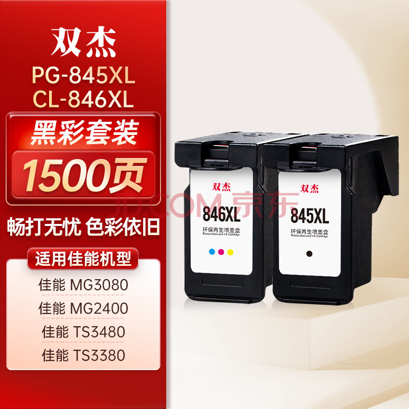 商品相册:双杰845墨盒适用佳能MG3080墨盒TS3380 TS3480 MG2580s MG2400 TS3180 TS308 MG2980 IP2880s墨水845 846墨盒第