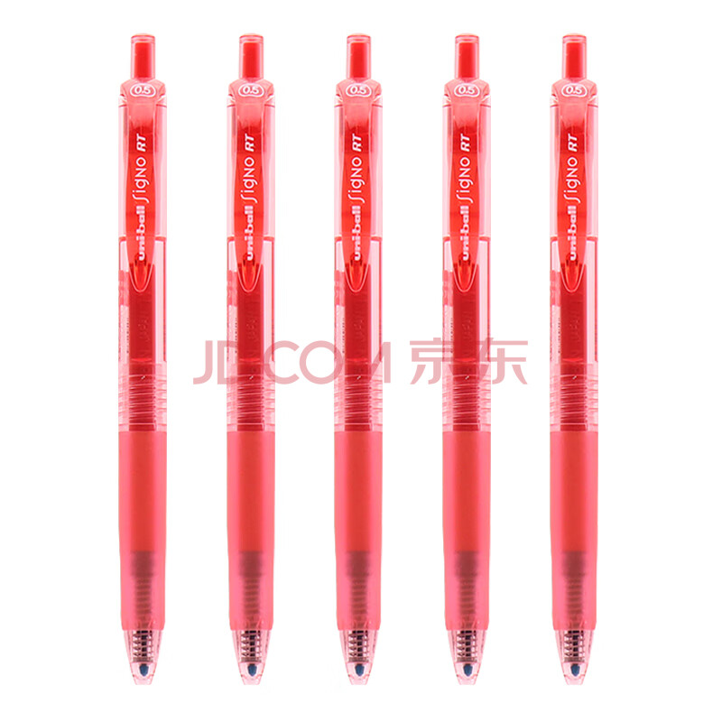 商品相册:uni三菱 uni-ball UMN-105按动红色中性笔高颜值0.5mm红笔签字笔商务学生考试水笔水性笔套装 5支第