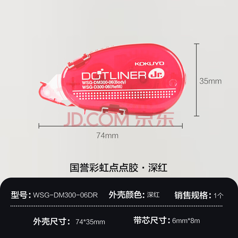 商品相册:国誉(KOKUYO)彩虹点点胶学生点状胶黏贴双面胶创意手工胶带8m*6mm内芯 深红 WSG-DM300-06DR第1张/共6