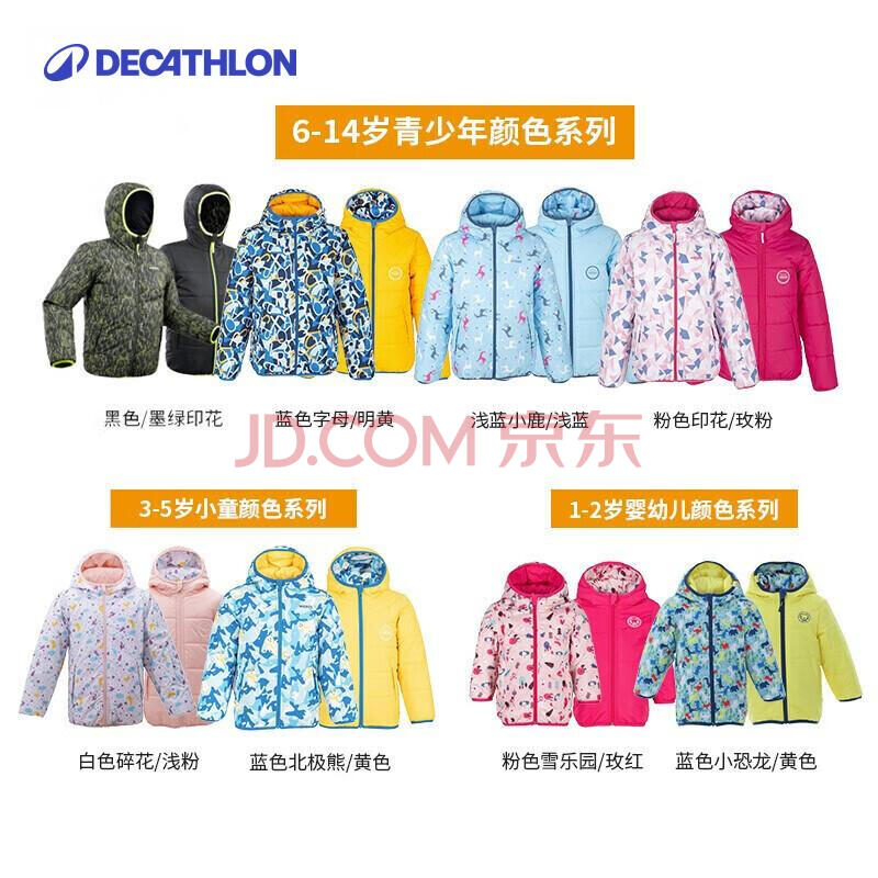 商品相册:迪卡侬儿童户外防水保暖双面穿棉服潮蓝色小恐龙-黄色12个月-2426760第