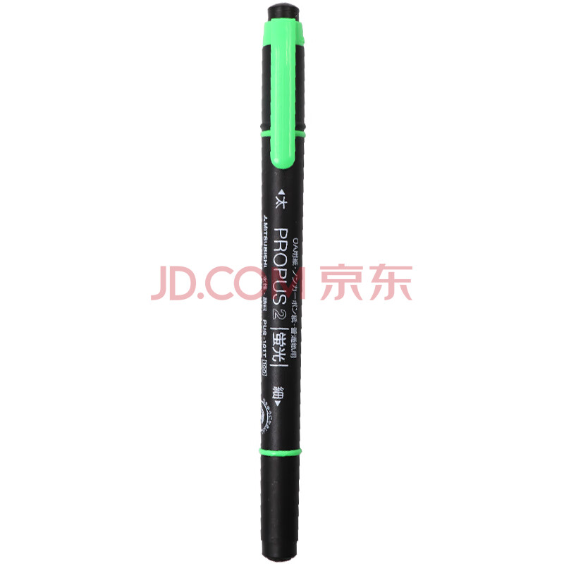 商品相册:uni三菱 双头荧光记号笔 学生作业标记笔彩色绘画记号笔 细0.5mm粗4mm PUS-101T 绿色 1支/袋第