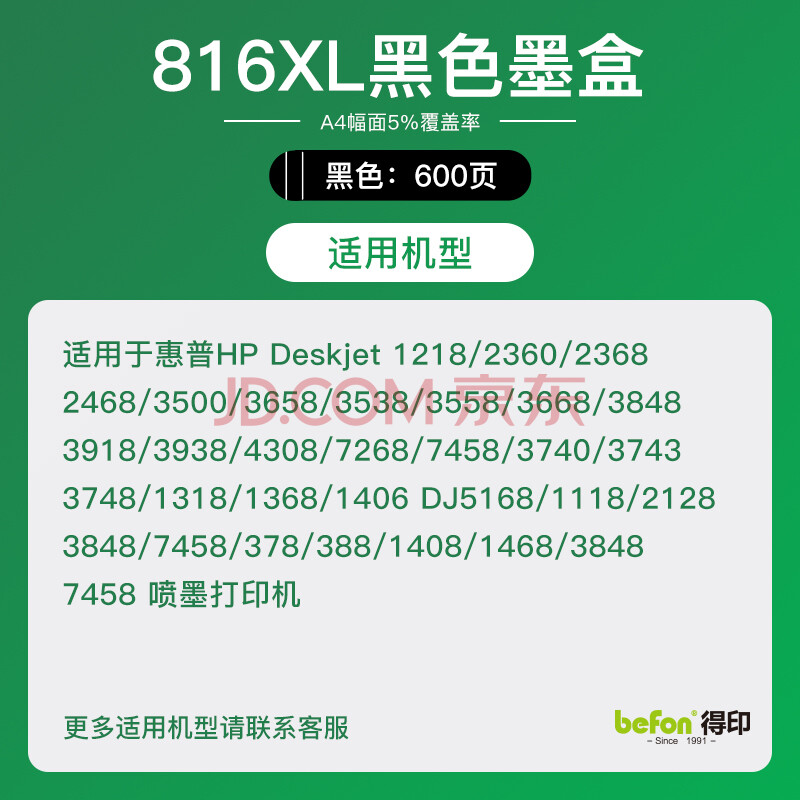 商品相册:得印816墨盒 黑色 适用惠普HP 1218 F2288 2360 2368 D2468 3358 3658 3668 4308 5168 7268喷墨打印机第