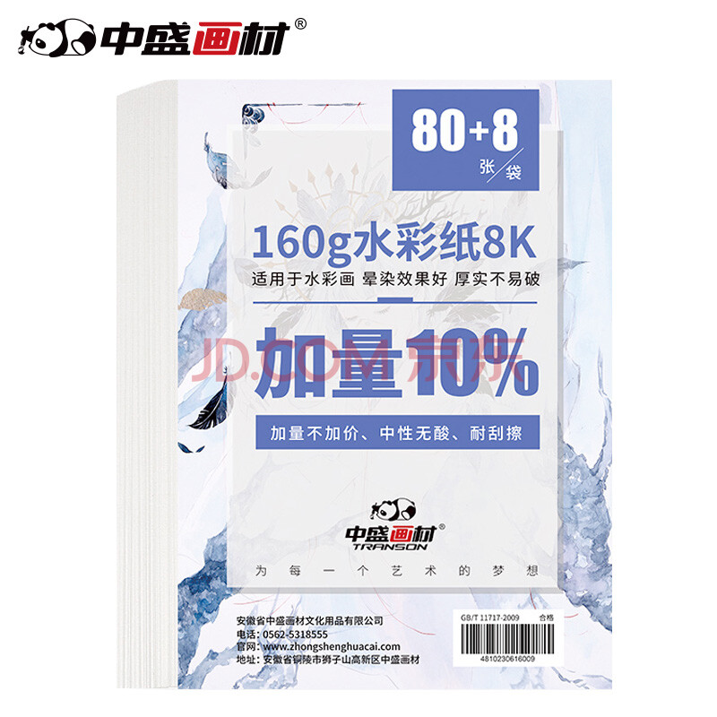 商品相册:中盛画材(transon)8K水彩纸88张/160g细纹水彩颜料专用画纸水溶彩铅画纸加厚8开美术写生第