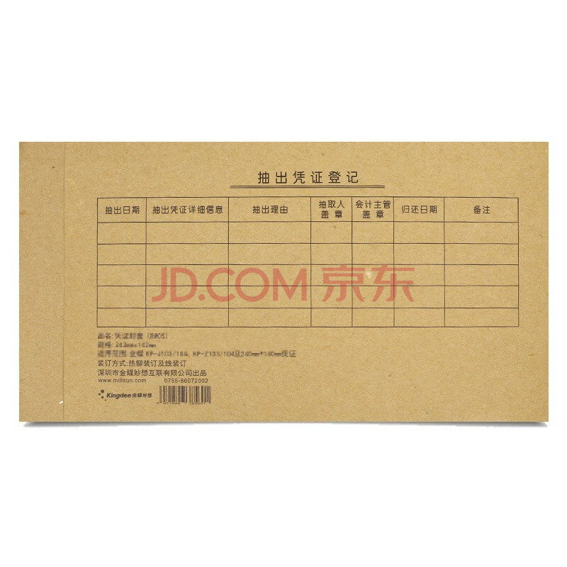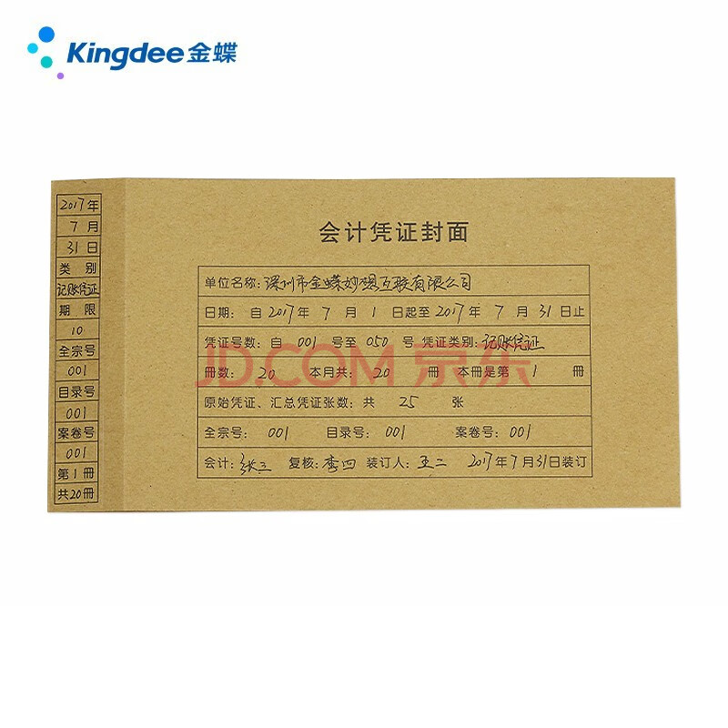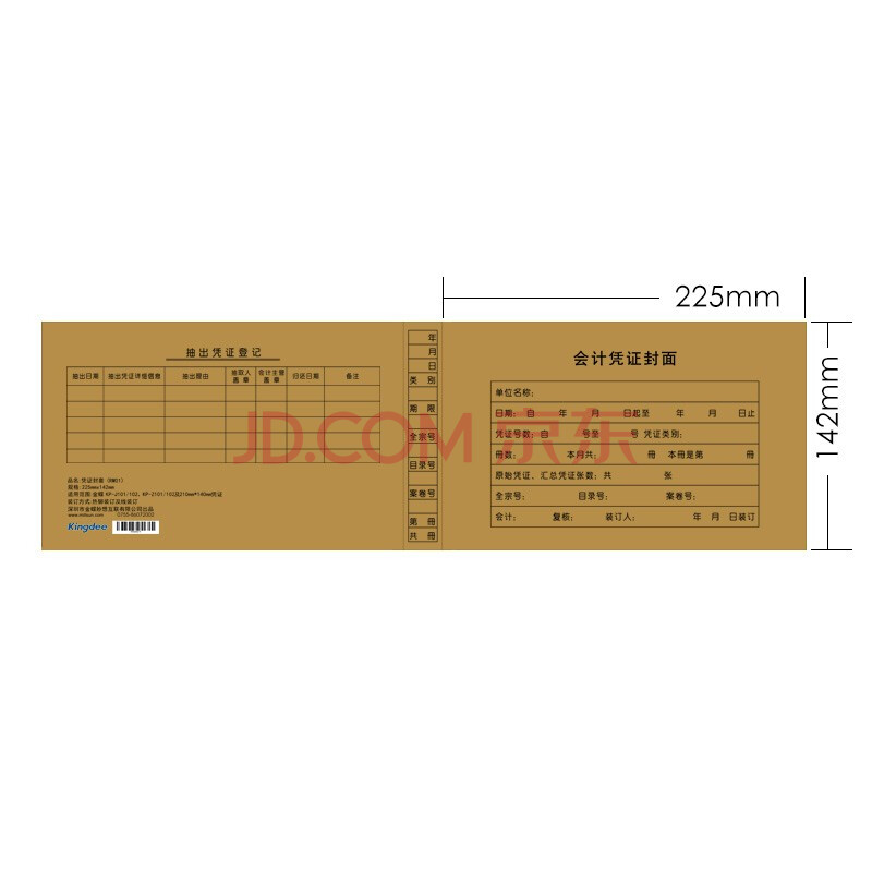 商品相册:金蝶(kingdee)会计凭证封面 记帐凭证封皮凭证装订连体封面225*142mm 50个/包 RM01第