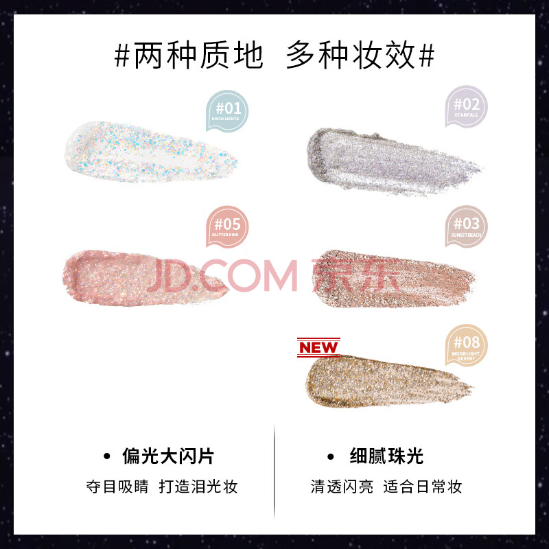 商品相册:悠宜(unny club)幻彩凝光液体眼影 08月光沙漠(多色大闪片超闪珠光滴泪妆)第
