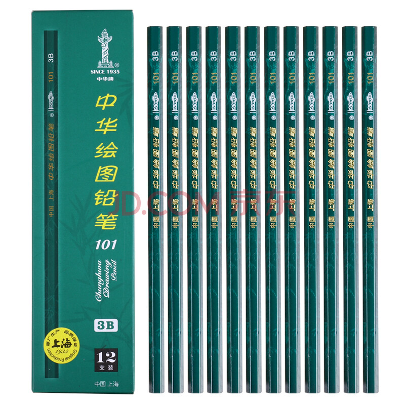 商品相册:中华【开学必备】中华 101-3B 绘图铅笔学生铅笔美术素描3B铅笔12支/盒第
