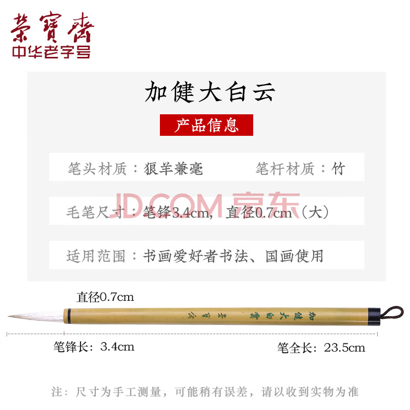商品相册:【全网低价】荣宝斋 毛笔 兼毫白云书法练字大中小楷 文房四宝国画字帖临摹成人初学者学生入门 加健白云-大第