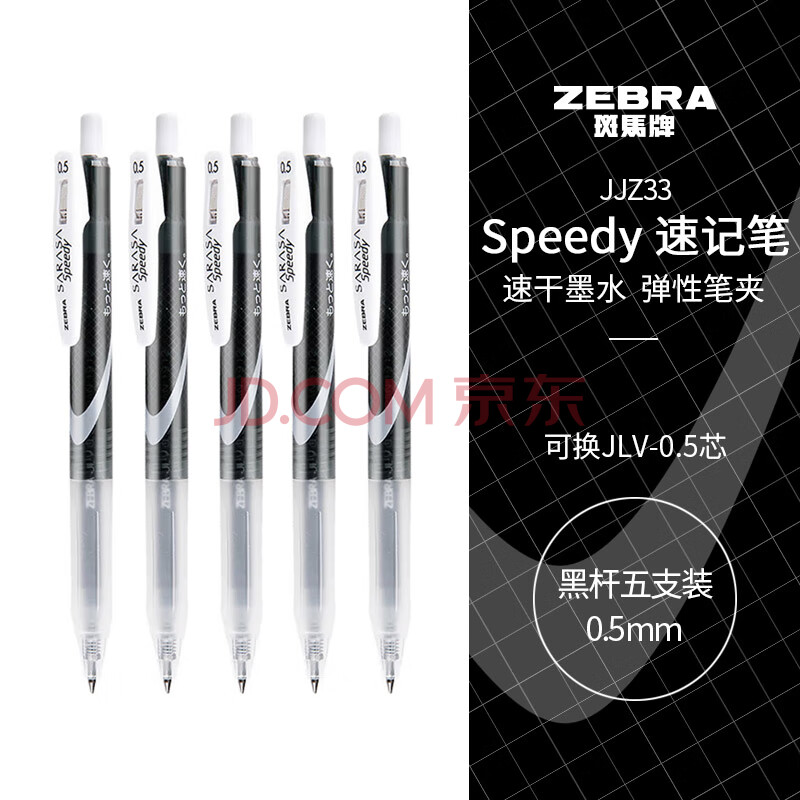 商品相册:斑马牌(ZEBRA)中性墨水中性笔 Speedy速记学霸笔 0.5mm子弹头大容量 JJZ33 黑杆黑色 5支装第