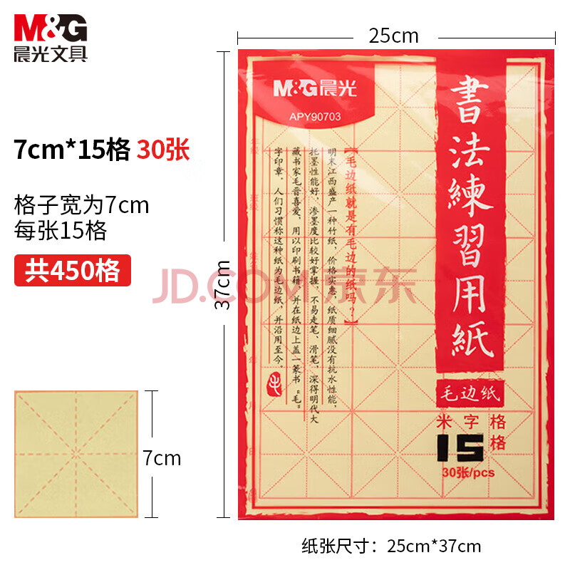 商品相册:晨光(M&G)文具毛笔书法纸毛边纸米字格 宣纸书法专用纸练习纸 初学者练字字帖开学礼物7cm*15格APY90703第