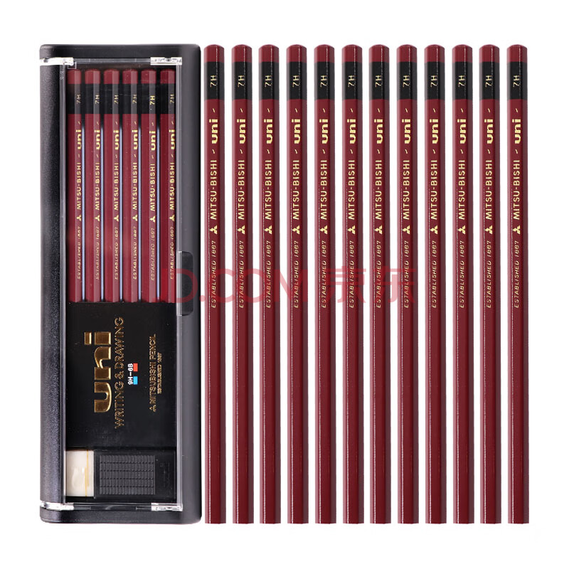 商品相册:uni三菱 金装铅笔7H 原木杆铅笔书写绘画设计专用 12支/盒(含橡皮)1887第