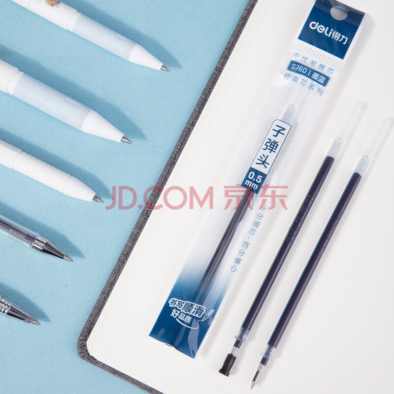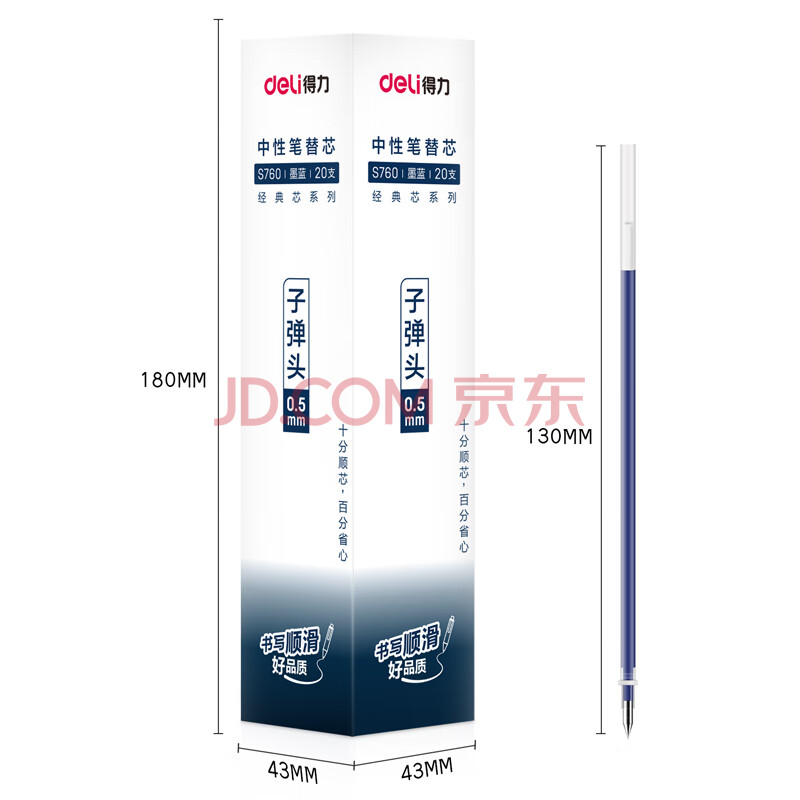 商品相册:得力(deli)0.5mm拔帽中性笔笔芯 子弹头签字笔水笔替芯 6600/33109/Q7适用 墨蓝20支/盒 S760第