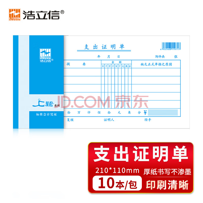 商品相册:浩立信(LISON)聚橙质优10本装支出证明单 210*110mm 50页/本会计财务通用单据办公用品第