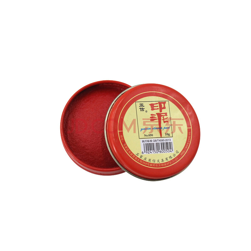 商品相册:亚信No.050 红色印泥10g 盖章指纹印泥圆形铁盒印台 财务办公用品42*12mm第