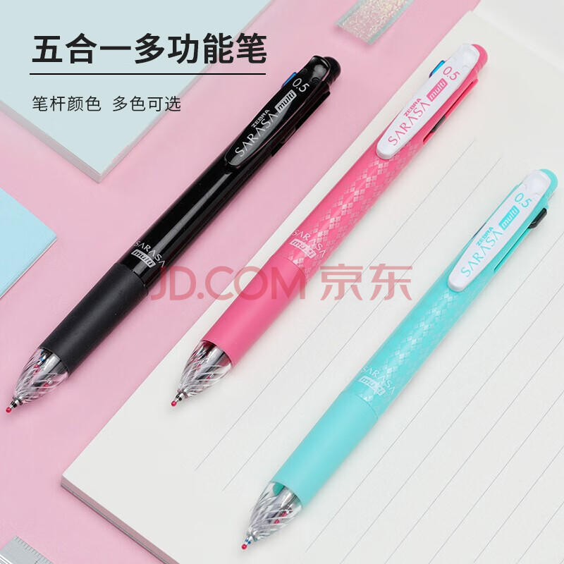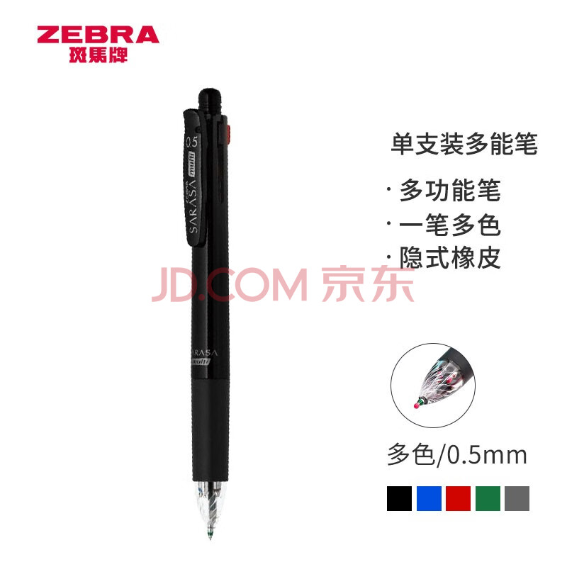 商品相册:斑马牌(ZEBRA)五合一多色笔(0.5mm四色中性笔+自动铅笔)黑蓝红绿学生商务办公签字笔J4SA11 黑杆第
