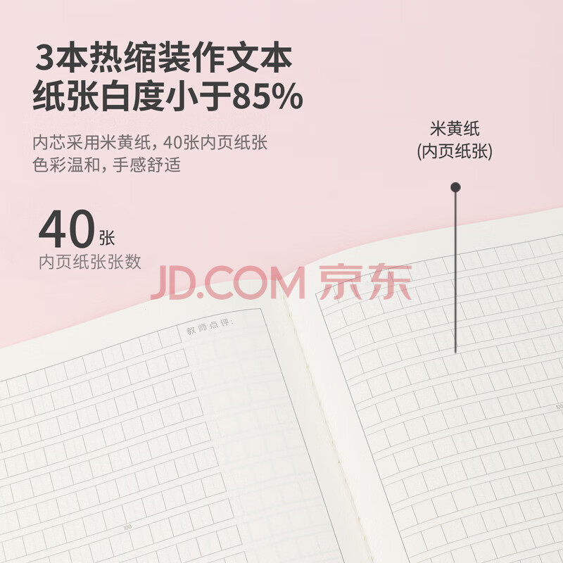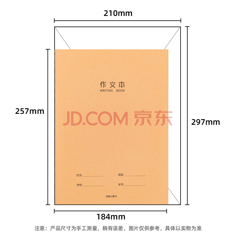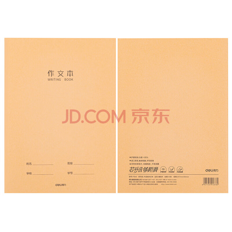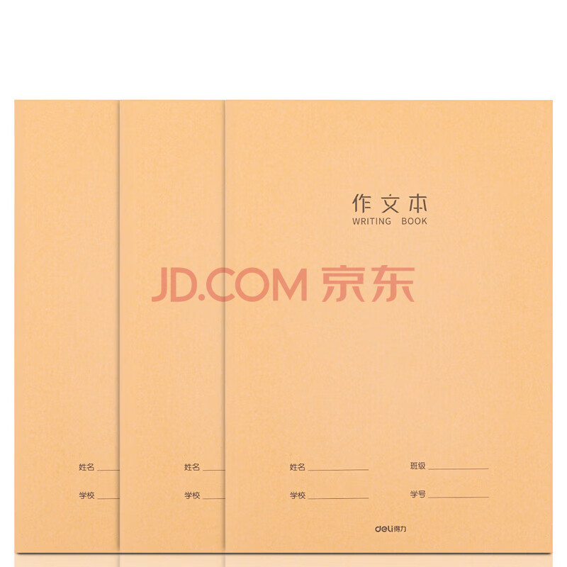 商品相册:得力(deli)牛皮纸作文本笔记本子缝线作业本记事日记本16K40张3本装300格F1640-3第