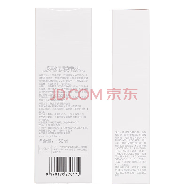 商品相册:悠宜(unny club)水感轻透卸妆油150ml 眼唇深层温和清洁黑头敏感肌清爽无油感第