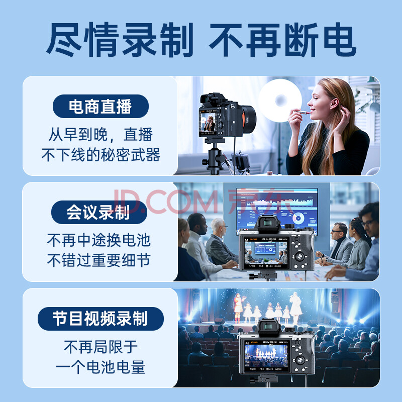 商品相册:绿巨能(llano)适用索尼zv-e10相机假电池fw50模拟电池sony zve10 a6400 a6000 a6500 a7rm2 a7s2微单直播电源第