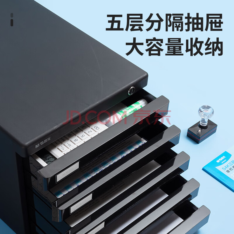 商品相册:晨光(M&G)文具 5层桌面文件柜 抽屉式拉手A4资料收纳柜 带索引标签 办公用品 黑色单个装ADM95298第1张/共8
