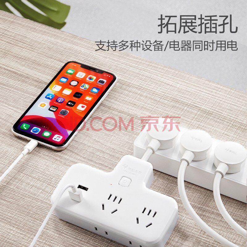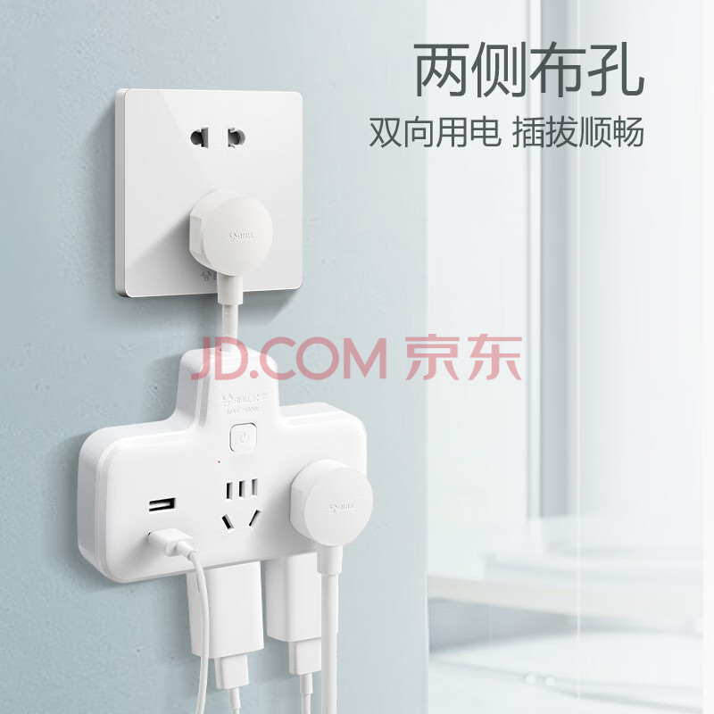 商品相册:公牛(BULL)插座扩展器usb一转多/一转四插座/转换插头/转换器/插排/插线板 柔性总控一转四带USB GN-9722Q第
