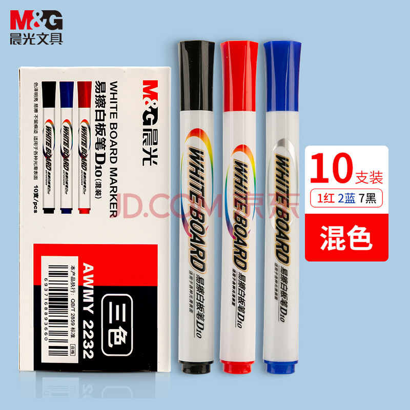 商品相册:晨光文具可擦白板笔 D10单头办公会议笔 易擦白板笔 (7黑 2蓝 1红) 10支/盒AWMY2232第