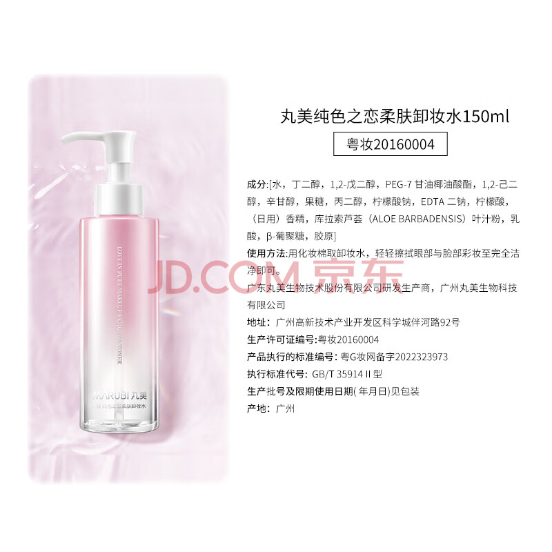 商品相册:丸美卸妆水男女适用 纯色之恋柔肤卸妆水150ml 眼唇卸妆 温和洁净清爽第