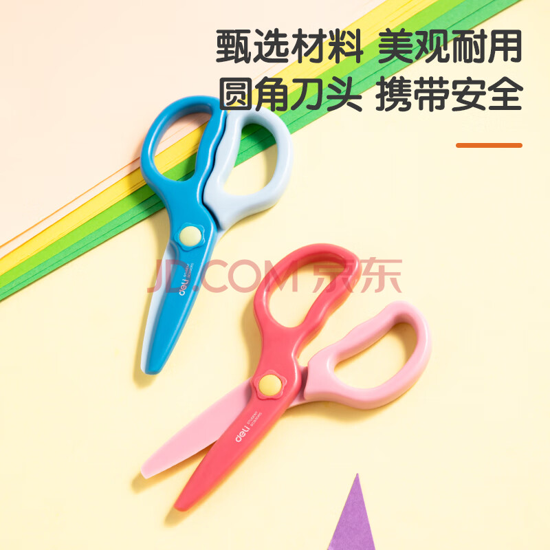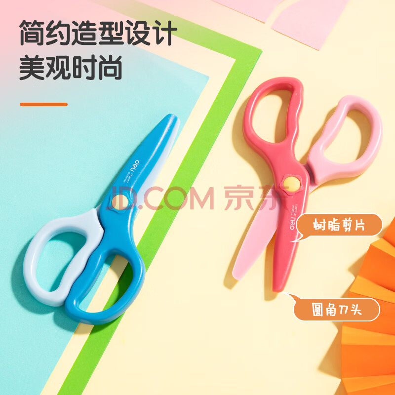 商品相册:得力(deli)儿童剪刀全树脂剪子手工小学生剪刀安全圆头美工小剪刀文具一年级幼儿园3-6岁 粉色6067第