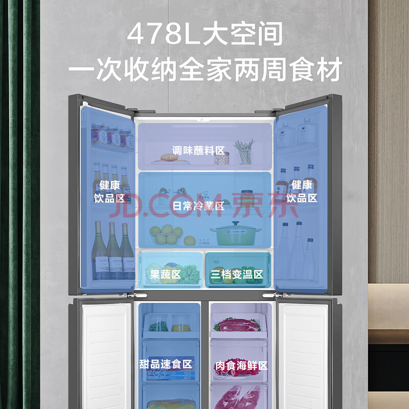 商品相册:海尔冰箱478升十字四开门玻璃门超薄嵌入式一级能效双变频黑金净化家用BCD-478WGHTDEDSW第